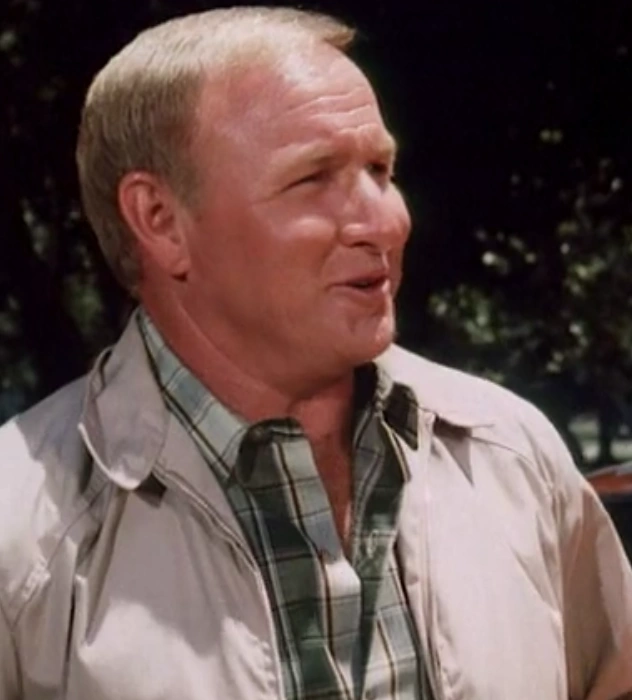 While driving around the track, he sees a stock car pull up. He pulls up and parks, getting out when Garvey confronts them. He walks up, putting a hand on Garvey’s shoulder and asks Bo and Luke if they have a good excuse for being out there. Bo remarks he didn’t think they needed one. After the boys explain they thought the track belonged to the county, Garvey tells him ‘they got an answer for everything don’t they Cale’ while he takes off his helmet. He sees how surprised the boys are and when Bo says they are from Hazzard, he tells Chet to wait a moment before telling them he knew a man from Hazzard once. He says he taught him a lot about cars when he was young and was called Skeeter. Bo and Luke say they know him and he used to work with their Uncle. He concludes they are alright and apologizes to the boys saying they can’t be too careful. Bo tells him that’s alright before shaking his hand. He then shakes Luke’s. He offers the boys an explanation and invites them to come see his car.